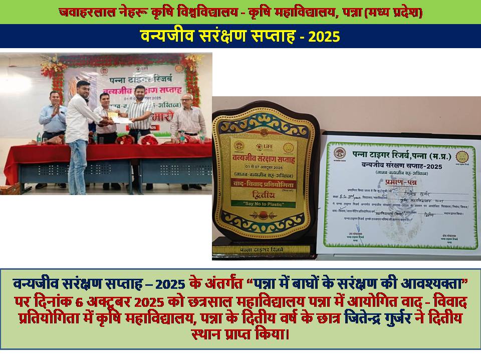 २९ वे युवा उत्सव के तृतीय विजेता कृषि महाविद्यालय पन्ना का छात्र जीतेन्द्र गुर्जर
