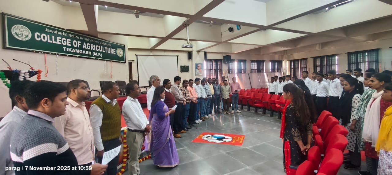कृषि महाविद्यालय टीकमगढ़ में वन्दे मातरम राष्ट्रीय गीत के 150 वर्ष पूर्ण होने पर राष्ट्रीय गीत सामूहिक गायन किया गया